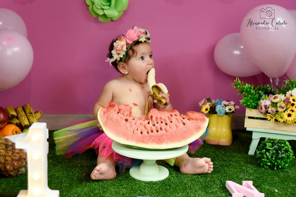 O Smach the fruit da Valentina foi preparado com muito carinho, quando chegamos na casa dela fomos recebidos com a mais pura simpatia da pequena. Sinal de sucesso.... e foi mesmo, a pequena deu um show particular, riu , dançou, bateu palma, comeu, enfim... não foi trabalho, foi diversão. Amamos Valentina. Papai Douglas e Mamãe Débora, muito obrigada pela confiança e parabéns pela Princesa.